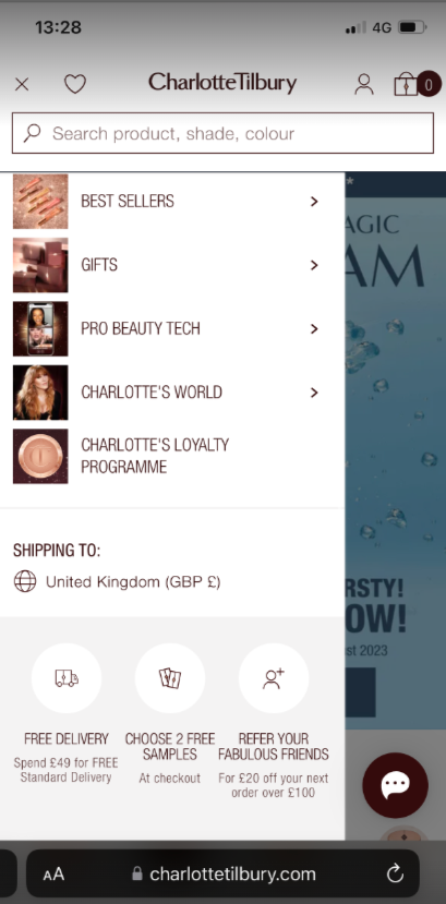 Wenn Sie die Charlotte Tilbury App verwenden, folgen Sie bitte den Anweisungen, die Sie hier finden.